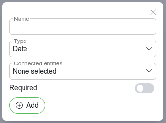 To create a new custom field press New custom field button. This will open a new modal where is possible to create three different types custom fields